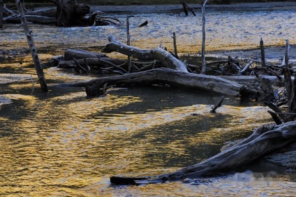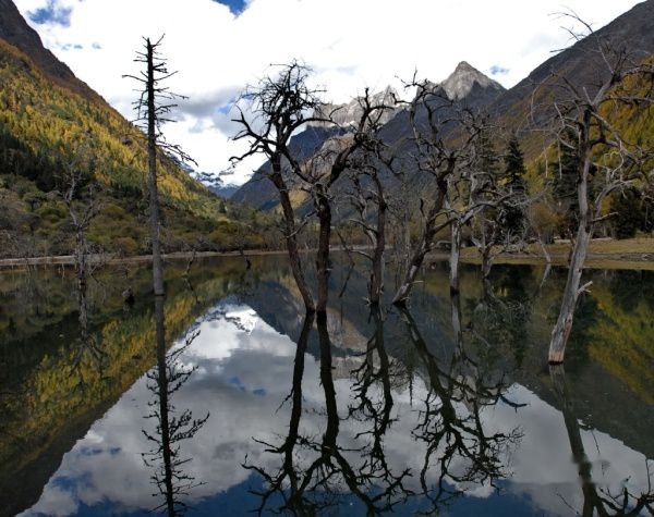 数以百计的成片枯树矗立于碧水之中,树树独立,枝枝苍劲,枯影映流水,永去影还在