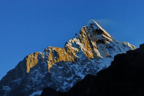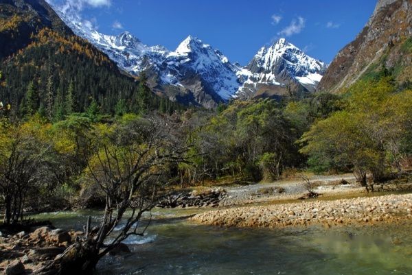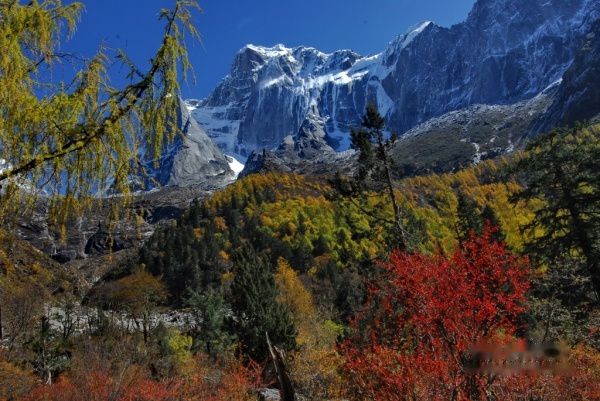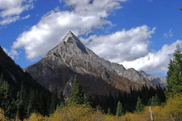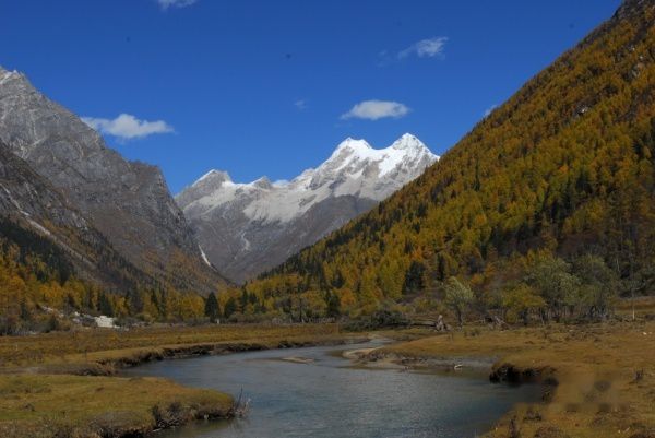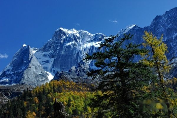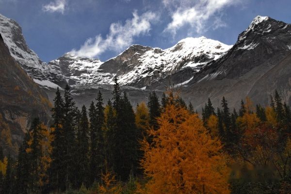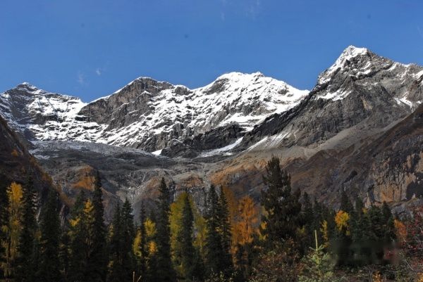 早晨6点半就进沟了。在沟口又见到了日照金山---四姑娘山老幺。