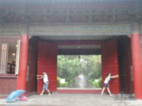 第二天,天阴沉沉的,我们空手出门,坐车到小寨,走一站路,到陕西省历史博物馆门口取票,大概9点了吧,队伍灰常长,我们聊聊天什么的,聊着聊着就下雨了- -前面善良的阿姨让偶躲在她伞下,师兄和fly就在棚子里等着队伍慢慢移动,大概10点,那身份证领票,人手一张,检票入内。开始的时候还这边蹭个导游那边蹭个导游的,后来发现我们跟不上导游的速度,就在后面慢慢看。陕博里的那些小小讲解员都很有意思,讲得(可能是背的)激情澎湃,好可爱O(∩_∩)O哈哈~花了两个小时左瞧瞧右瞅瞅,虽然也不是很看得懂,但那种厚重的历史感让我这个在只有几十年历史的小渔村长大的娃颇感压力。下楼来,外面下了好大的雨,在等待N久无果,又一番心理挣扎,雨貌似有点小之后,就冲出去了。西安的路上到处有伞卖,这个也很有意思,不管是路边流动摊点还是小店铺都有卖,一律10元一把,质量不保证。于是我们买了伞,去吃了岐山面,买了药o(╯□╰)o因为晚上吹空调,每个人喉咙都痛,尤其是我这个话多的0 .0最后演变成了感冒,小感冒而已,毫无压力。