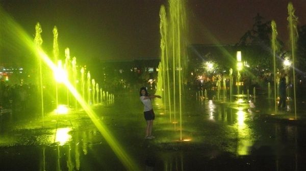 钟楼的东大街十分繁华,但是居然没有超市,某日看到一个巨大的沃尔玛的招牌,十分激动,事实上,那位真身还离我们十分遥远,穿越了一幢楼又一幢楼又一幢楼,问了N个人都说还在前面之后,就在我们即将放弃的时候沃尔玛出现了,于是我们悲痛的在里面精挑细选,差点错过音乐喷泉的时间。经过我这个路神的组装,果断缩短了回去的线路,然后打的去到大雁塔北广场,13块。此时已经9:05,我们狂跑过去,果然被它壮观的景象征服了,果然是传说中亚洲最大的音乐喷泉。西安的景色都是古朴大气型的,我十分喜欢O(∩_∩)O~9:30音乐喷泉结束,在广场里溜达了一圈,打的回去12块- -