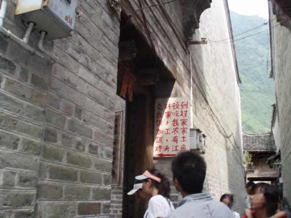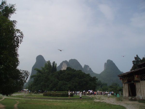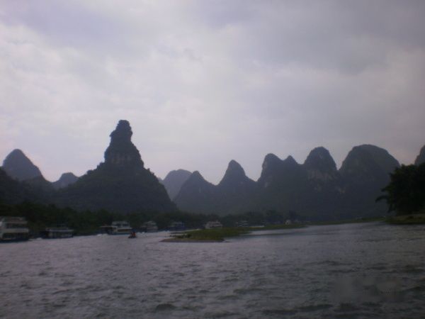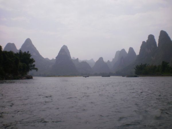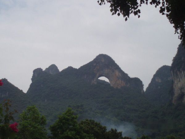 第二天,(8月8号)来酒店接我们的是个帅哥导游,他负责我们阳溯一日游。旅游景点包括阳溯陆地风光(月亮山、大榕树)、船游阳溯10里画廊、游兴坪渔庄。我们一行7人,打算在阳溯多待一天,因为当时是当地旅游旺季,旅馆不太好找,我们怕游完当天的行程回阳溯后找不着住处,所以在车上和帅哥导游神聊一翻后,由他帮我们联系了阳溯的一家旅馆。还好我们“下手”快,后头车上还有几个想住阳溯的游客看我们在联系旅馆,也找导游联系都没定到房间。