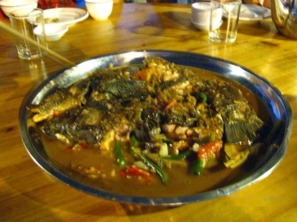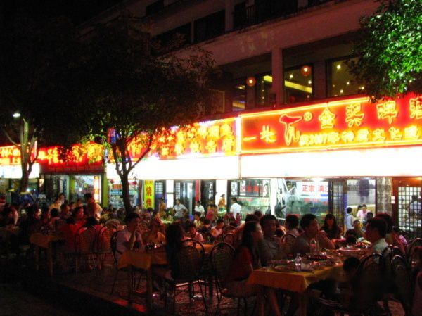 游完漓江,我们跟旅行社的行程结束了,随车回到阳溯,我们坐了辆电瓶车10元钱到了事先联系好的旅馆。放好行李,出门到江边大排挡吃饭。