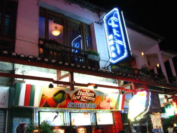 吃过晚饭我们逛了逛阳溯西街。阳朔西街位于阳朔县城中心,房屋建筑古色古香,地方特色浓厚。荟萃各种旅游纪念品、小吃于街市。其充满了异国情调的夜景更是风情万种,风俗浓郁。