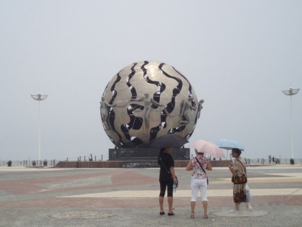 吃过午饭,孩子们说头天在银滩没玩够,想再去银滩公园。在3路公交车站等车时,我们发现在同一线路上我们还有个景点没去玩,那就是北海的海滩公园,于是我们决定去海滩公园。海滩公园就在银滩公园前面一个站下,海滩公园也是银滩海水浴场的组成部分,免收门票。号称亚洲第一钢塑“潮”就位于银滩旅游度假区的海滩公园内,整座建筑以大海、珍珠、潮水为背影,与钢球、喷泉、铜像遥相呼应,互相映衬,既显示出海的风彩,又构成潮水的韵律,使传统的人文精神与现代雕塑建筑艺术融为一体,形成完美和谐的统一体。海滩公园晚上有音乐喷泉,据说很漂亮,可惜我们是白天去的,没看见。海滩边有不少人在戏水,不过比银滩的人少多了,感觉海滩比银滩那边还美些。海上还有不少的小快艇,不过玩的人不多,因为看上去不怎么安全。