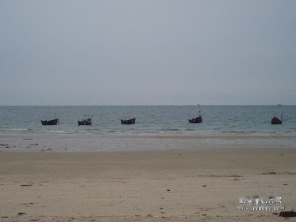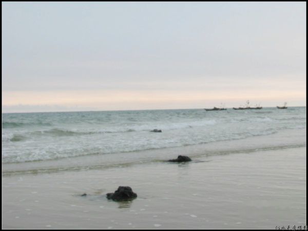 晚上在钟叔家吃晚饭的时候听说明天要刮台风了,大家怕刮起台风后被困在岛上,于是决定明天买船票回北海了。因为要离岛了,大家想再到芝麻滩看看能不能看见日出,于是第二天(8月4日)5:30我们就起床摸黑到了芝麻滩。不过运气还是不好,因为台风要来了,天气不好,不只没日出,看来还要下雨了。 在芝麻滩边吃过早饭回到钟叔家,头天约好的三轮车也来接我们去码头买票了。