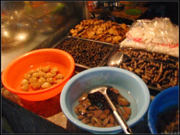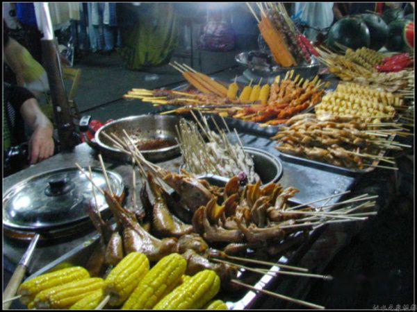 我们的住宿地就在广场对面不远处的背街里。整条街都是家庭旅馆。全是4、5层高的小洋楼改造的。有独立的卫生间、空调、电视、热水器,很干净,价格也便宜。双人间60元,三人间70元。大家简单的整理休息后,决定下楼吃饭,然后到北海的银滩公园玩。没想到,出了旅馆大门往右走,就是北海的一条夜市街道。街上有不少的小吃和买小饰品的摊点。新鲜的水果现做的沙冰很大一杯才4元,超值!卤鸡腿才3.5元一个,安逸惨!