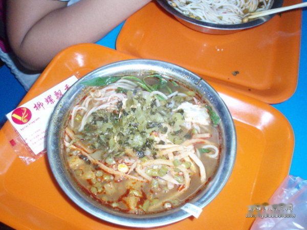 本来在网上查好了,我们达到南宁后要转乘公交车到南宁的琅东汽车站坐大巴到北海的,没想到一出南宁火车站就有到北海的大巴车,每人65元。于是决定就在火车站坐大巴去北海。由于时间还早,大家在火车站对街吃了早饭。之前在网上看到南宁的螺蛳粉不错,于是给女儿点了一份南宁的螺蛳粉,结果端上桌一看,大失所望。即不好看也不好吃。比起重庆的麻辣小面差远了。