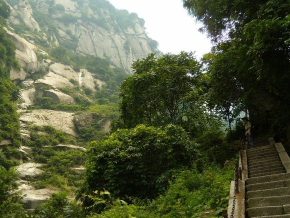 由东峰下到金锁关,好像很快,路上撞见几个装备精良的驴友,我和领头的大哥相视一笑,他道了声您好,我回了个大大的笑脸。然后遇到了几个挑山工,居然有比我还小的少年和一个身材矮小的女子。看他们,有些苦涩,不想自恃优越说无关痛痒的感慨,远远地看着,祝你们健康。