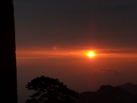 等了将近半个小时,太阳还不露面~被峰顶的劲风吹得有点晕。决定回去了,再吹下去会头痛的。回屋,脱了外衣裤准备睡个回笼觉。同住的朋友们也陆陆续续地回来了,大家有点失望。大概5:50左右时,一个哥们激动地喊,日出!!哈~我看到一个炫黄的太阳溜溜达达地出现在窗外~