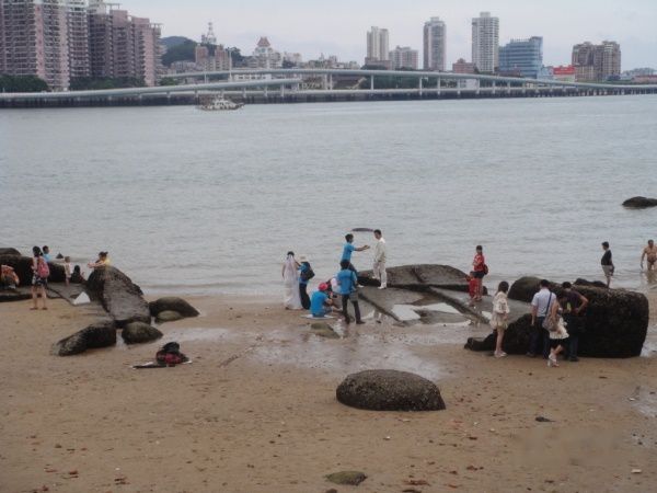 下了日光岩就是郑成功纪念馆,或许是福建的这段历史离我们太遥远,失去了感同身受的体会,草草参观了一下就继续寻找下个景点,来到了我们昨日经过的菽庄花园。在这之前,我们又去了昨日失望的沙滩,踩了踩海水,总不能来一趟连海水都没碰过。很冰凉,浪不大,海水下的沙很粗,赤脚踩上有些不舒服。可以确定的是,跟长江完全不一样,这里的海水是绿的,哈哈。