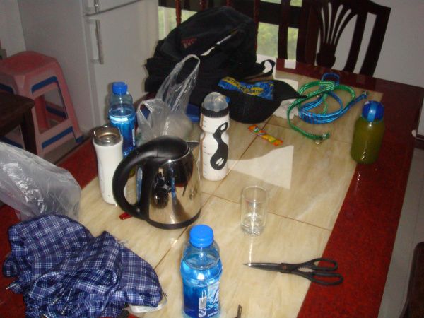 出发前凌乱的桌面,吃了两碗汤圆,收拾好东西,我们上路了。