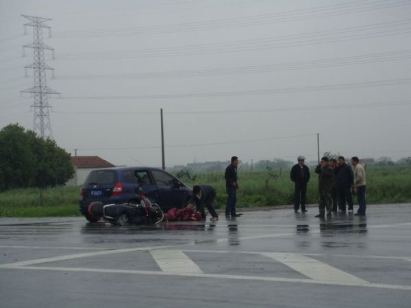 雨天路滑,尤其要小心!路上看到的车祸,乡村小道十字路口,电动车被撞翻,老远就能看到受伤者嘴中流出鲜红的血,祈祷她平安,也祈祷我们旅行一路平安。
