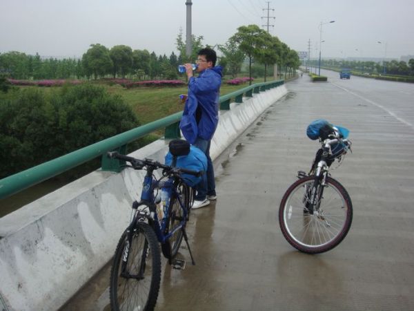 昨天订计划的时候,本打算今天的目的地是南通与如皋之间的一个小镇,虽然漫天飞雨,虽然遭遇逆风的折磨,我们还是顺利完成了目标,并超额赶到了如皋。春子这小子是第一次骑长途,有今天的表现,真的很了不起,上午是我一直在前面领骑,下午我体力不支,这小子跑到前面领骑去了,年轻就是好啊。