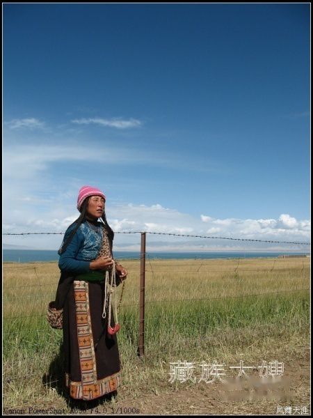 在如矢如砥的马路两边,是宽广的草地。纵目向前望去,草地延伸到天边。天地相接处,渲染着一抹湛蓝,炫目而艳丽。马师傅告诉我们那就是青海湖。向着天边行进了个把小时还是接近不到那条湛蓝的线,马路上却遭遇了一群群的羊,肆无忌惮的蜂拥而来。肥硕的羊儿根本就不是我们在菜场见过的模样,大小几乎和一头猪相仿了。停车避让,我们纷纷和羊群亲密接触,留影纪念。牧羊的两个年轻人,脸上有着典型的高原红。据说是恋爱的对象,小伙子面对我们的镜头很是羞涩。马师傅说,藏民的传统是女人放牧男人持家,居然重活都是女人去做的,真是不可思议。一路颠簸到了青海湖的沙岛,却由于季节的关系所有的旅游项目不开放,只有一些沙雕存在,也就没有了参观的意义。转道其他景区,终于在中午时分到达了青海湖的边缘-洱海。洱海水清澈如镜,如镜的湖面倒映着附近的山影,远处的山峰覆盖着薄薄的积雪,马师傅告诉我们这里才下过了雪,山峰上温度极低,雪就在每一次的降落中积存了下来,最后形成白雪皑皑。
