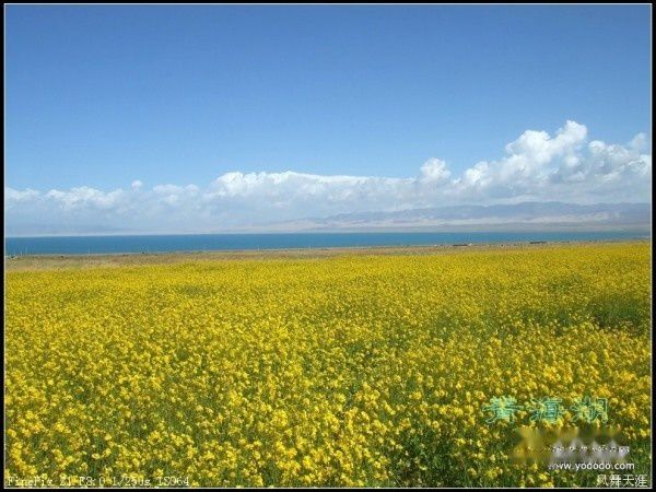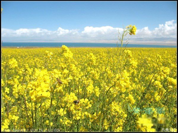 尽情的摄取美景后感觉饥肠辘辘,赶往另一个景区的时候却意外的看见了一片油菜花,美不胜收。于是都顾不上那辘辘饥肠,扑向了那一片花的海洋……在这个十月的秋季,居然还有油菜花!金黄的颜色在荡漾着,迎风飘香;黄色花海的边缘是青海湖湛蓝的湖水,蓝的比宝石还纯净;远方紧贴湖水边缘是如画的沙丘,身后是白雪覆盖的山峰。多重色彩的撞击,视觉的享受让心灵震撼到眩迷,那美景是用画笔都描绘不出的。让人有窒息感的美让我们流连忘返,贪婪的摄取着美景,恨不得融化在这画中仙境……只是那商业化的小姑娘追着合影收费,实在有煞风景。