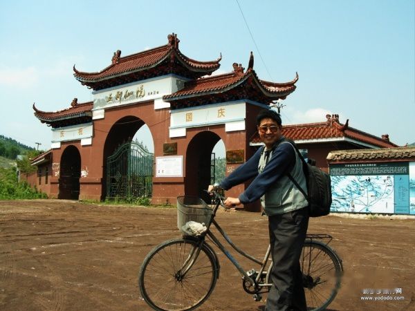 到大五柳,果然不一样了,水库南头修了一个牌坊,上书“五柳仙境”,旁边还有售票窗口,看看说明,票价30元呢。看这情景,我想起了“杀鸡取卵”这个成语。附近有一个告示牌,说从北头进入景区不要票。便从北头进,所好的是水库大坝上下都修了水泥路面,骑行更方便。过了桥,进入林荫道,就是景区了。往里走了一段,一道横杆拦住行人,上书北门售票处,看样子再往里就要买票了。其实在水库对面看的很清楚,就是曲折的道路和一座小拱桥。旁边有个指路牌,说上边有山洞,这是我原来没见过的,循路走过去。果然看到一块宣传牌,写着“莲花洞”,还说朱元璋的老婆马娘娘小时候割草打柴来过这个洞。