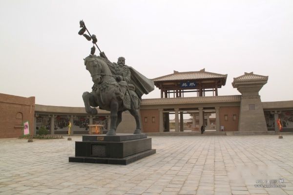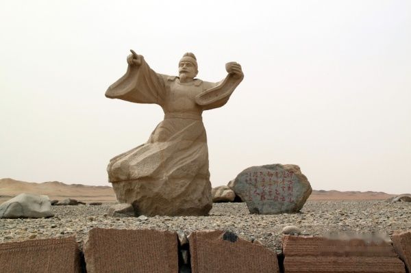 阳关的门票里已经含了讲解费,如果人少的话就要等上一会儿,凑成一个小团由讲解员带着参观。我们一行7个人不用等,就直接出发了。进门就看到了张骞的雕像,纪念他当年两次出使西域。