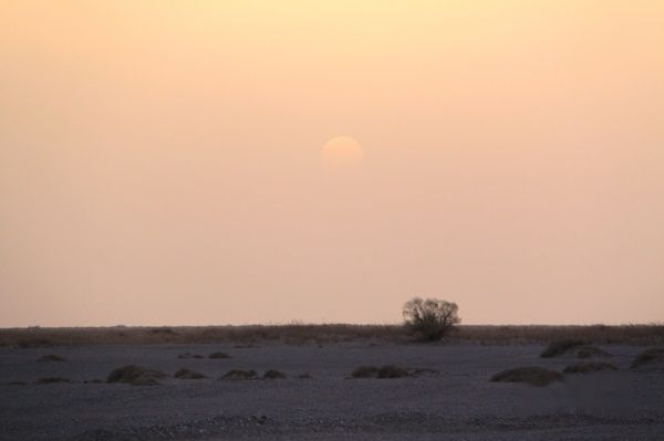 最后看了“舰队出海”,远远看去,气势如虹。可惜照片拍不出那种千军万马的感觉,站在那里远远眺望,油然升起一种指点江山的英雄气概。原本在这里看日落会是一个不错的选择,可是看着这飞沙走石狂风大作,只能逃回车里去了。听司机说在我们这里狂风肆虐的同时,城里经历了一场沙尘暴。在回敦煌的路上,天气开始好转了,天边显出了淡淡的落日余辉。