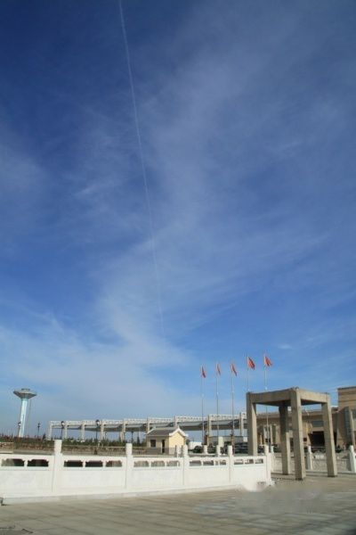 在我们即将离开敦煌的那天早晨,敦煌终于向我们展示其美丽的蓝天白云。或许是因为前一天的那阵沙尘暴把天空吹干净了,当我们一大早来到敦煌火车站时,那个天美得让人嫉妒。如果这样的天配上鸣沙山月牙泉,配上阳关玉门关,配上雅丹落日,那该多好啊~~