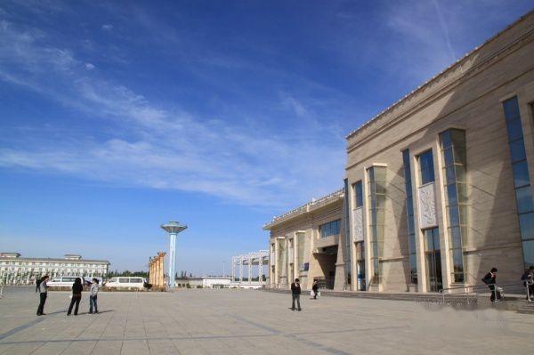 出了博物馆,走出现在的阳关,就能看到王维的雕像和他那首“西出阳关无故人”的诗。他身后便是那条著名的“阳关道”。不由想到那句“你走你的阳关道,我过我的独木桥”,据讲解员说,这个阳关道足有1公里宽,出了阳关道就真的是关外了。远远能看到的那个烽燧是阳关景点里唯一留存的古迹了。