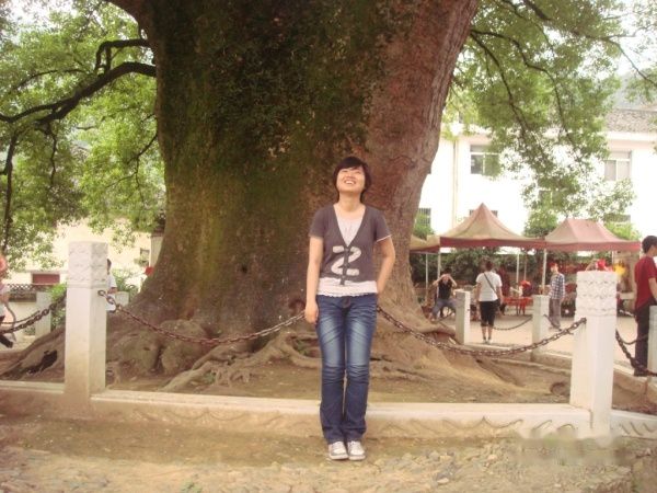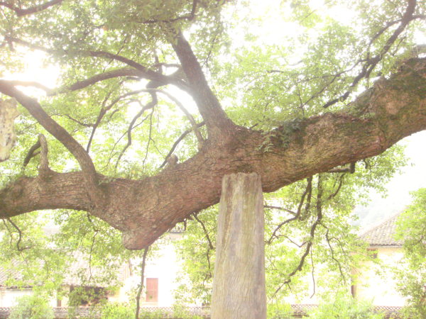 还看了那时人们结婚用的床,呵呵,我估计我一个人睡在上面都嫌小,可那床的确是婚床。听导游说因为那时的人13,14岁就结婚了(也太早了吧)这床 小是一个特点,还有个特点就是这床还带个窗户。不是用来通风的,当然也不是给新娘子逃婚用的,哈哈。我听导游讲是给女方逃命用的,因为安徽男子大多都外出做生意,女子留在家不幸的会遇到强盗,她们就跳出窗户逃命。这红妆馆还有一个景点就是:天下第一樟树