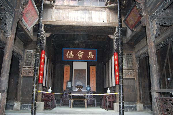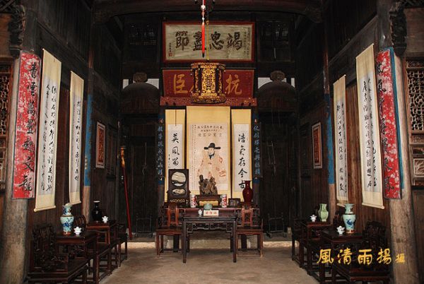 “从善堂”分前后两进。历史上曾传“胡宗宪的后裔虽人口众多,分而居之,但分居不分家,彼此和睦相处”。故有“二十四个门阙”的雅称,并号称“七世同堂”。“从善堂”的后进,有一幅清代书法大师包世臣所撰写的对联:“道德传家富贵依然久;诗书济世子孙更永贤”和“八十齐眉”的匾额,彰显了这个堂堂家族的殊荣和珲煌。左侧厢房内陈列着胡家上祖的四桢黑白照片和一套木制家具,显的井井有条。史书载,胡宗宪晚年被诬陷为严嵩党而下狱,并屈死于狱中。直到隆庆六年明神宗时,才为其平反昭雪。从善堂前进门口那座明朝万历年间铸造的“太平钟”就是见证。可惜那口钟上的文字,因为年代久远而有些锈蚀不清了。