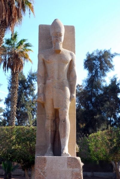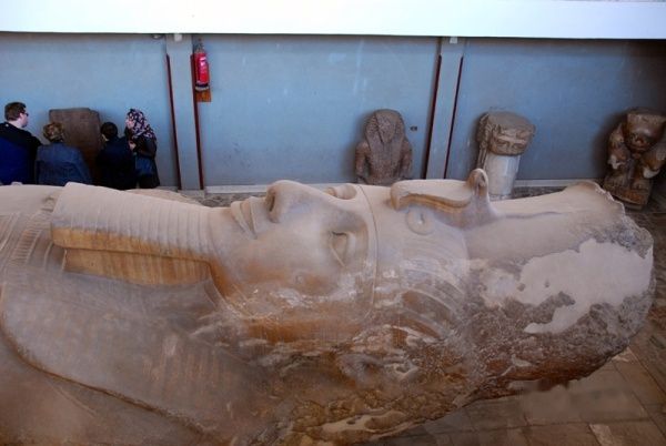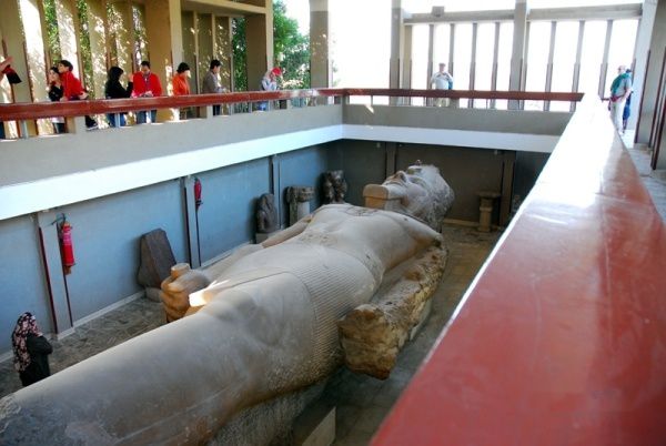 孟菲斯的博物馆算得上是全世界最小的一个,因为里面只有一尊躺着的拉穆斯二世(Ramesses II)和几尊残破的小石雕。这座雕像原约14公尺高,由整块石灰岩雕成,相当精美。虽历经3200年的岁月,但雕像上的象形文字都还清晰可见。在一场地震中,雕像的双腿及左手折断,因此现在让雕像横躺在博物馆大厅的地上;如果要看个清楚,最好上二楼阳台绕行一圈。
