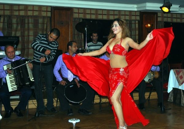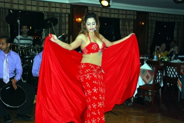 然后跳肚皮舞的女郎开始登场,红色鲜艳欲滴