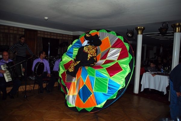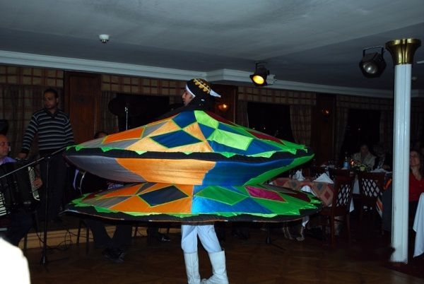苏菲舞(Sufi Dancing)起源于13世纪土耳其的伊斯兰神秘教派,舞者身穿白色圆篷长裙,头戴红色圆锥帽,原地旋转.口念先知名称,右手向上伸展,平静冥想,祈求得到先知的救赎,借助高难度的持续旋转动作,达到与神合二为一的超脱境界。