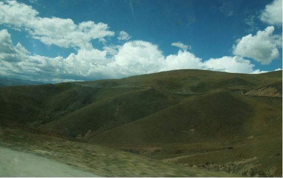 (后悔啊真该订老李的拼车自由行,就能下车拍照了)沿途的景色那真是好,回来的时候有幸看了下桑堆的红草地,颜色并不是那么的好,师傅说时候还没到,但是途经海子山的时候,景色那才叫好呢!一望无际的空旷高原,海子山的海子像处子般羞涩,隐隐若现的在巨石后边闪闪金光,汽车奔驰在公路上,海子山蔓延了差不多10分钟,我看间了传说中的兔儿山。我也在晃颠中睡了过去,太困了!没办法。理塘到雅江的路况太差了,颠簸的我受不了。