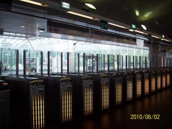 上图所示是地铁检票口,有绿灯的入口是可以通过的,与国内的地铁一样,将票插入进口,票会自动从另一个口出来,门自动打开了。