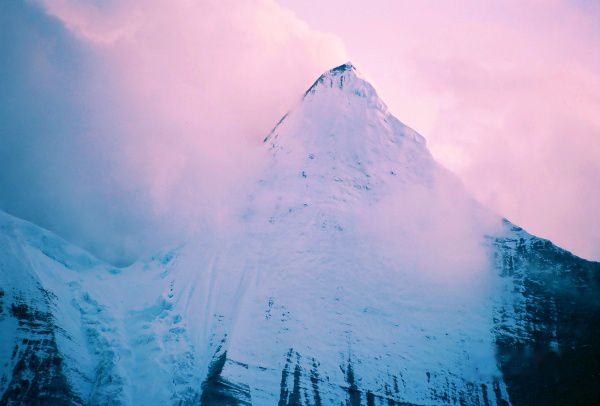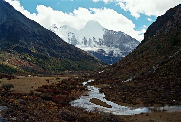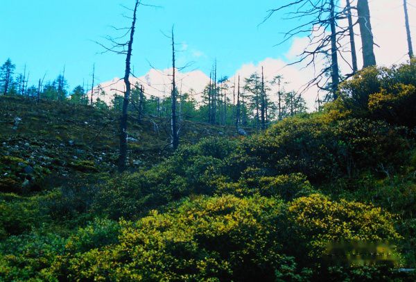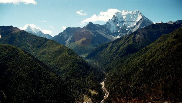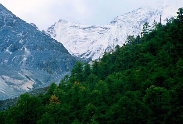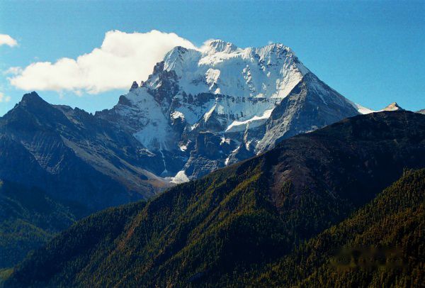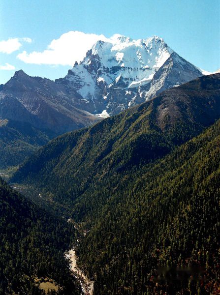 海拔5958米的央迈勇雪山(峰顶掩在云层中不原露面)