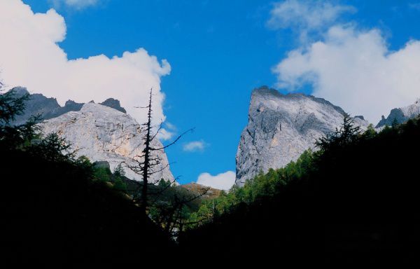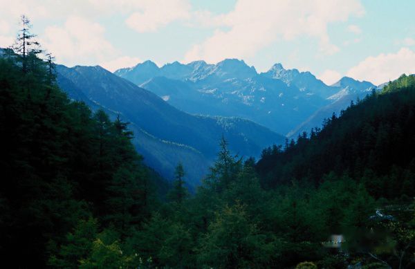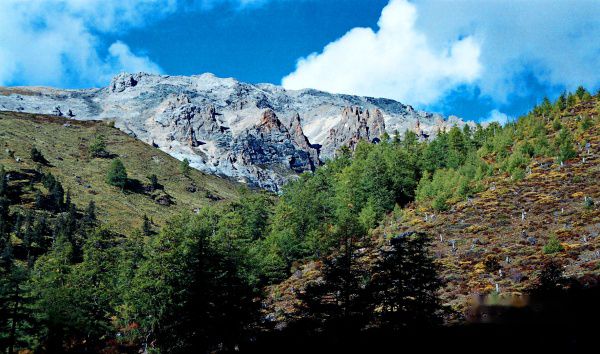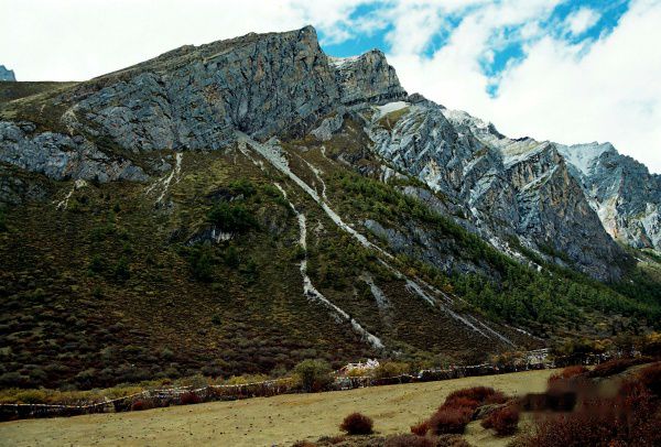 稻城的出租车基本上都是微面,但有出租手续的只有十多辆,无手续的黑车要多多了。早上到街上找到一对广州来的年青夫妻共同包一辆车去亚丁,平均每人也就50元钱,同客运公司班车票价一样,路上还方便了许多。一路翻越4600多米的波瓦山,过杜鹃峡谷,两个小时就到了70多公里外的香格里拉乡(原日瓦乡),这里是三叉路口,往左经蒙自乡和木里藏族自治县的东子乡,桃巴乡,屋脚蒙古族乡可去泸沽湖,路况较差,但一天到达没问题;往右走,不远就是去亚丁的收费处,购票后我们被告知:若要在洛绒牛场住宿,则要在售票大厅登记预约,因那里只有150人的接待能力。香格里拉乡到亚丁还有30多公里,过了收费处不远又是一个三叉路口,往右顺山谷是去俄初山的路,原本我们也要去俄初山的,现季节尚早了点儿,更主要的是又在修路,据说还要延伸到泸沽湖(这条路将会比经蒙自乡那条路近许多);往左翻越一座海拔约5000米的高山后就是亚丁。当车翻过山口,到南坡一拐弯处时,一座巍峨壮观,冰清玉洁的雪山跃入眼帘,她就是贡嘎日松贡布神山的北峰,6032米的仙乃日雪山,同时还能看到5958米的东峰夏诺多吉的峰顶。亚丁村座落于登山起点农同坝北边高约二、三百米的一块台地上,约有二十多户人家,公路穿村而过,下到农同坝终止。