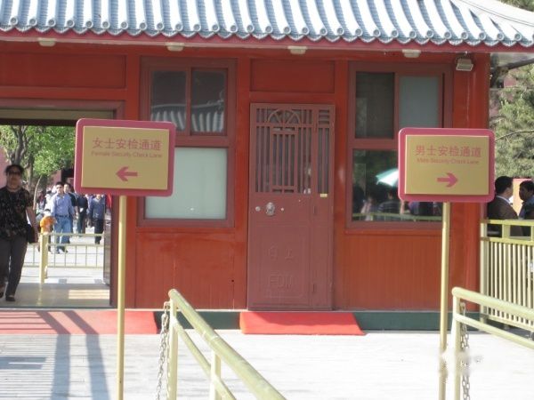 城楼上满是特警,基本上5步一个,带着太阳镜,黑黑的。金水桥那也是,**武警和便衣特警。要问我怎么知道是特警的?呵呵,他们脸上没写,不过,有一个穿的是雪豹突击队的T恤。过金水桥,因为人实在多,他们会催促,不让照相,所以想要留念,动作可要快哦!