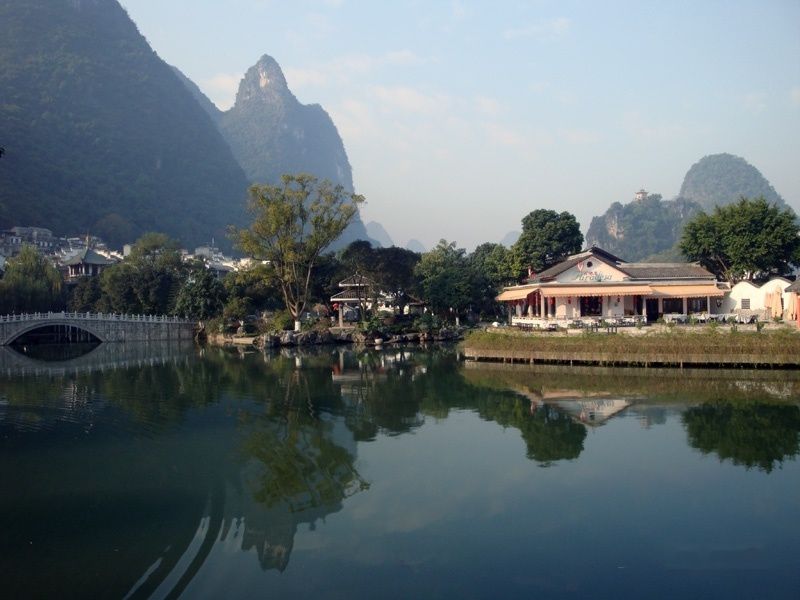 据说去阳朔不能不看印象刘三姐,在酒店服务员、“驴友”、导游的多方念叨下,忍不住还是去看了,结果发现,除了典型的张艺谋的人海战术,灯光特技外,没有什么情节可言,仅仅是展示当地渔民的日常生活,寒冷的冬至夜,我和ivy竟然都在露天的看台上都打起了瞌睡。后来两个人在西街的咖啡店里无聊之余聊起奥运会的开幕式和刘三姐的异同,总结说:张艺谋还是那个张艺谋,刘三姐已非昔日刘三姐。