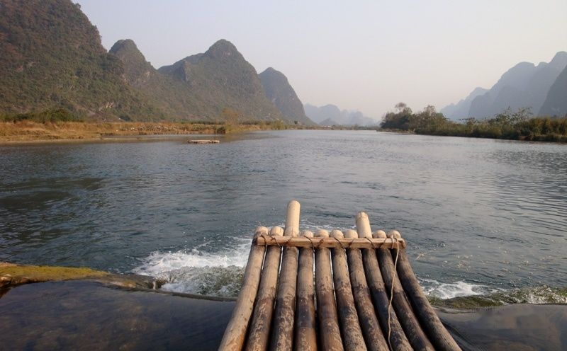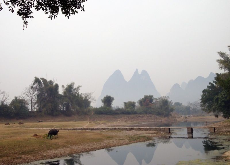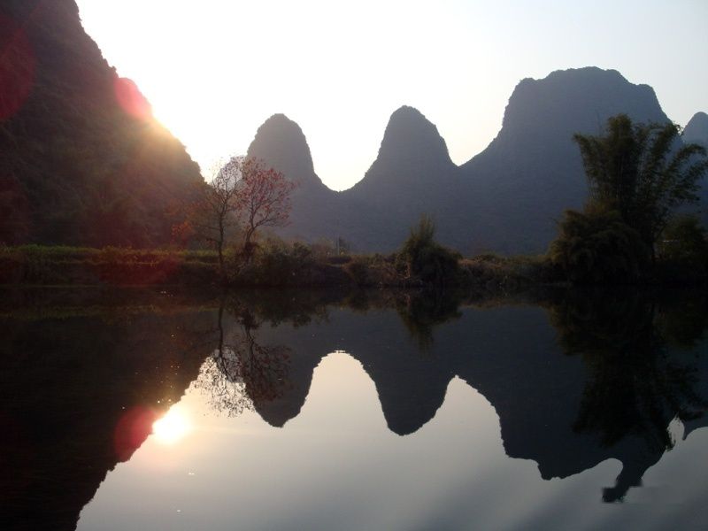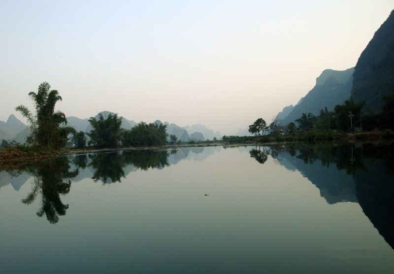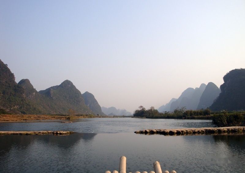 后面两天都安排了骑车游阳朔,虽然历经爆胎,莫名的车坏,影响了一时的心情,但是还是收获颇丰。当坐在竹筏上顺遇龙河流而下时,那份小桥流水,连绵秀山,凤尾竹摇曳倒影带来的宁静致远的心境,是都市中万难找到的。