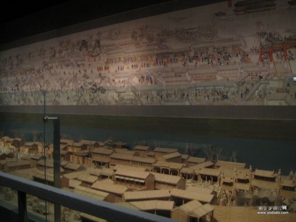 这个,是根据乾隆南下出京时的场景真实再现的,我的技术不好,PP里看的不清楚,不过无论牌楼还是市井,都和上面那幅画一致。不知是哪位师傅巧手生花,惟妙惟肖。