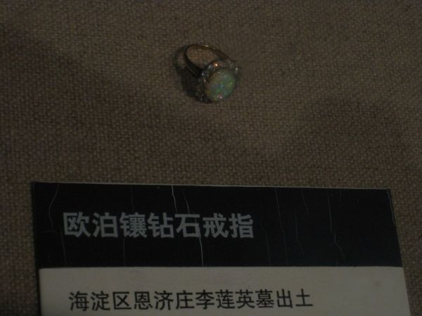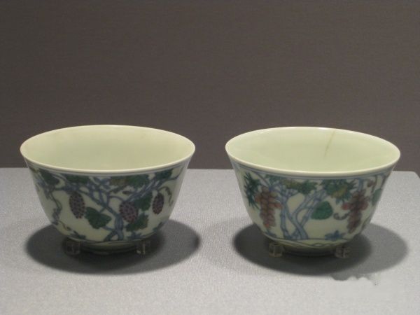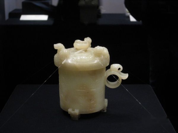 明成化斗彩葡萄纹杯和青白玉夔凤纹子刚款樽,都来自小姑娘坟——黑舍里氏墓。按现在的市场来说,明成化的东西都是真品。据说标有子刚款的东西很少,只有对成品十分满意,才会在隐蔽处落下自己的名款。黑舍里氏墓出土了很多珍品,那她的主人是谁呢?刚听到索尼的时候以为是那位康熙的皇后,后来一想不对啊!原来,她是康熙朝辅政大臣索尼的孙女、保和殿大学士索额图的女儿,七岁时死于疹疾,次年下葬。此时索家位高权重,而她又被索尼喜爱,故随葬皆是珍宝也就不奇怪了。