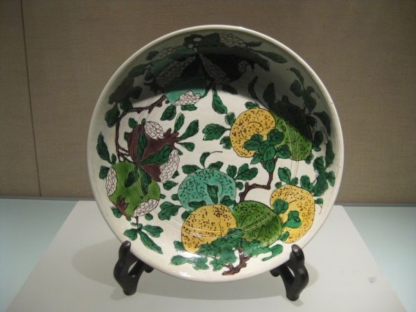 在王刚老师节目中出现过的重器,素三彩花果纹盘,虽然隔着一层玻璃罩,但终究是见到真的了。