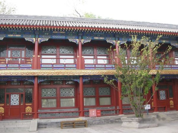 和珅的仓库,158米长的二层楼,都是他藏宝贝的地方,从背面看,每一个二层的窗户都不相同,以此来区别每个房间宝贝的种类。在这个小楼前面是和珅的卧房,不过不让拍照。里面全是寸木寸金的金丝楠木,跃层的。据说一扇现在估价6000万,里面可不止百扇哦。这和地面上铺的大理石同是他死罪之一。金丝楠只在故宫有,而那种自然成花的大理石,除了此处,只有承德避暑山庄有。现代大规模使用的是国家大剧院,不过那里是人工的。