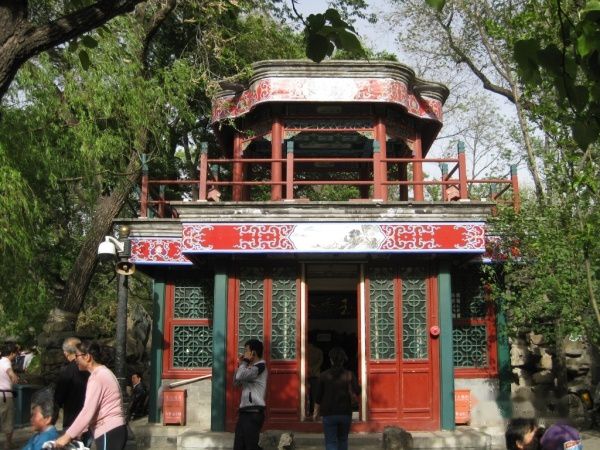 原来的和珅府,因为赐给慈禧时期的六王爷恭亲王奕,才更名恭王府。这是园内唯一不是和珅建造的。除了象征天圆地方外,据说是根据慈禧的帽子建的,恭王爷在亭上品酒论事,传这位被慈禧老佛爷四次罢免五次录用的亲王用意是要把慈禧踩在脚下。