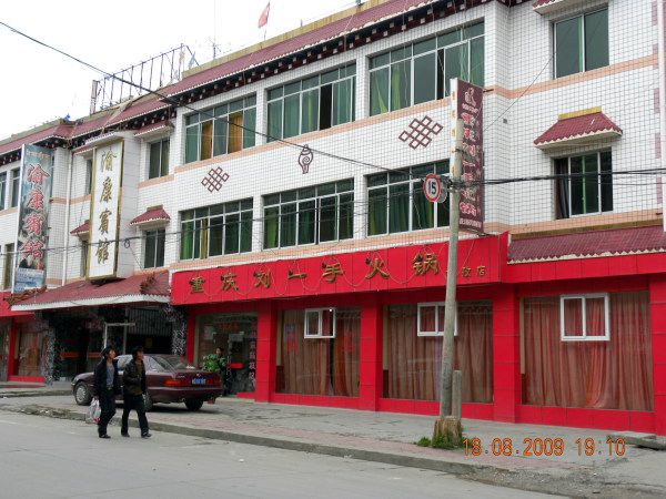 甘孜晚上经常停电,所以找一家有自主发电设备的住宿点还是很有必要的。我们住的渝康宾馆还可以,卫生、价格、地理条件都不错。标间讲价成80元,楼下左边有两家味道不错的餐馆:早餐:“顺口溜面馆”,其素椒杂酱面、红油水饺相当巴适,老板好像是邛崃的;中、晚餐都可在“天天过年”解决,味道不错。往右边不远是县城中心广场,天天晚上,都有跳锅庄的,很热闹。另外,宾馆左边有一小道,通到后面的护法大殿,每天有很多当地群众在此转经、朝拜、晒太阳。