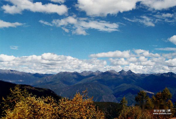 今天是10月5日,目的地是四川稻城。本来,从香格里拉经上村(碧让大峡谷),四川乡城前往稻城只有330多公里,因修路堵车,现长途客车都是绕道四川德荣、乡城前往稻城,行车距离增加到450公里。四川得荣被称为“西部太阳谷”,县内4000米以上的山峰就有数十座,这一路上都是高山峡谷,快到乡城县城时,在其西北4700多米的雪山丫口,拍了几张蓝天白云下的群山景观,颇能代表这里的地形地貌。