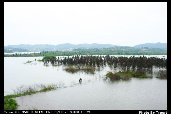 四月的湖南,一路上很多地方的洪涝灾害很严重,淹没了大片的农田,小树都挨淹了一半