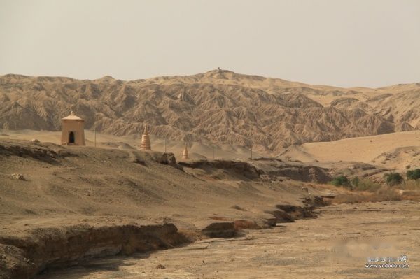 莫高窟对面的三危山,据说当年莫高窟正是因为三危山的佛光而建的,中间那条应该是河床,曾经一度水淹莫高窟,可惜现在早已干涸了。
