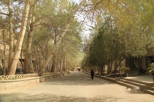 莫高窟前的林荫道,虽然游人不少,但这里总显着一种静谧。