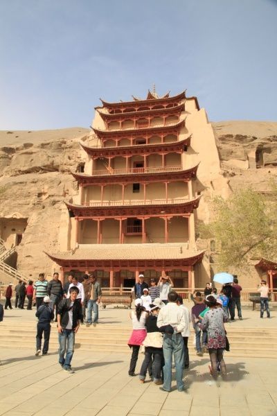 九层塔:莫高窟的标志性建筑,里面是全国最大的室内坐佛。在塔底向上仰望佛像,还是很震撼的。