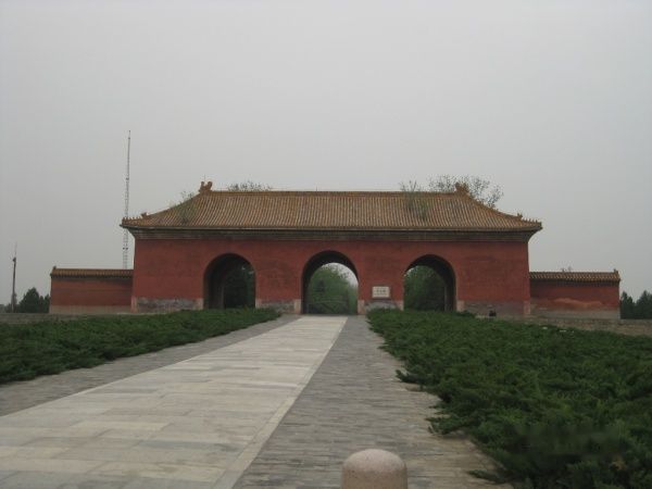 这是十三陵的大门,据说跨过中间最大的会升官,两侧会有福气。只要幸福就好。