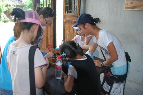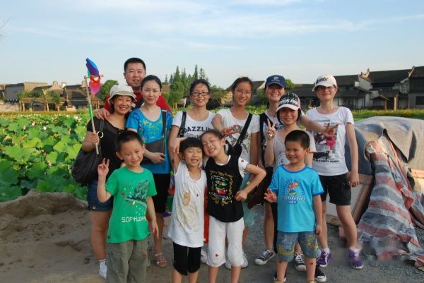 到乌镇西栅景区,我去办理相关手续,孩子们先来张合影: