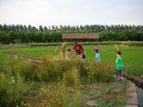 有点遗憾的是,玩完陀螺铁环,过了捉泥鳅的时间,所有项目5点结束,我们只好在捉泥鳅的附近,把萤火虫的场地先踩了点,找稻草人合影:
